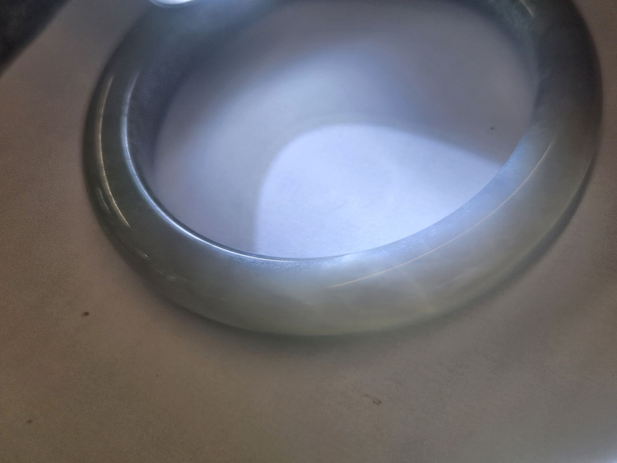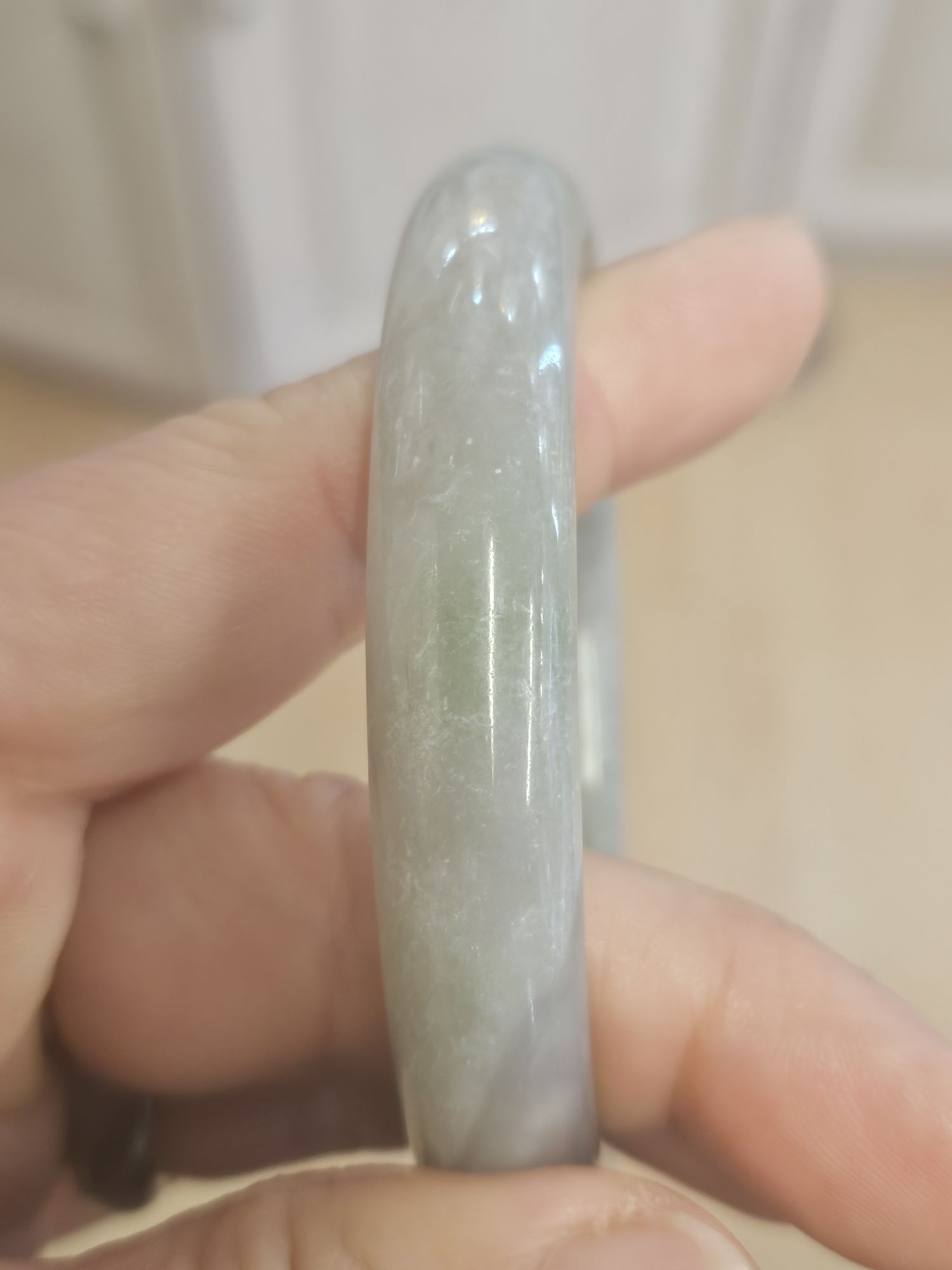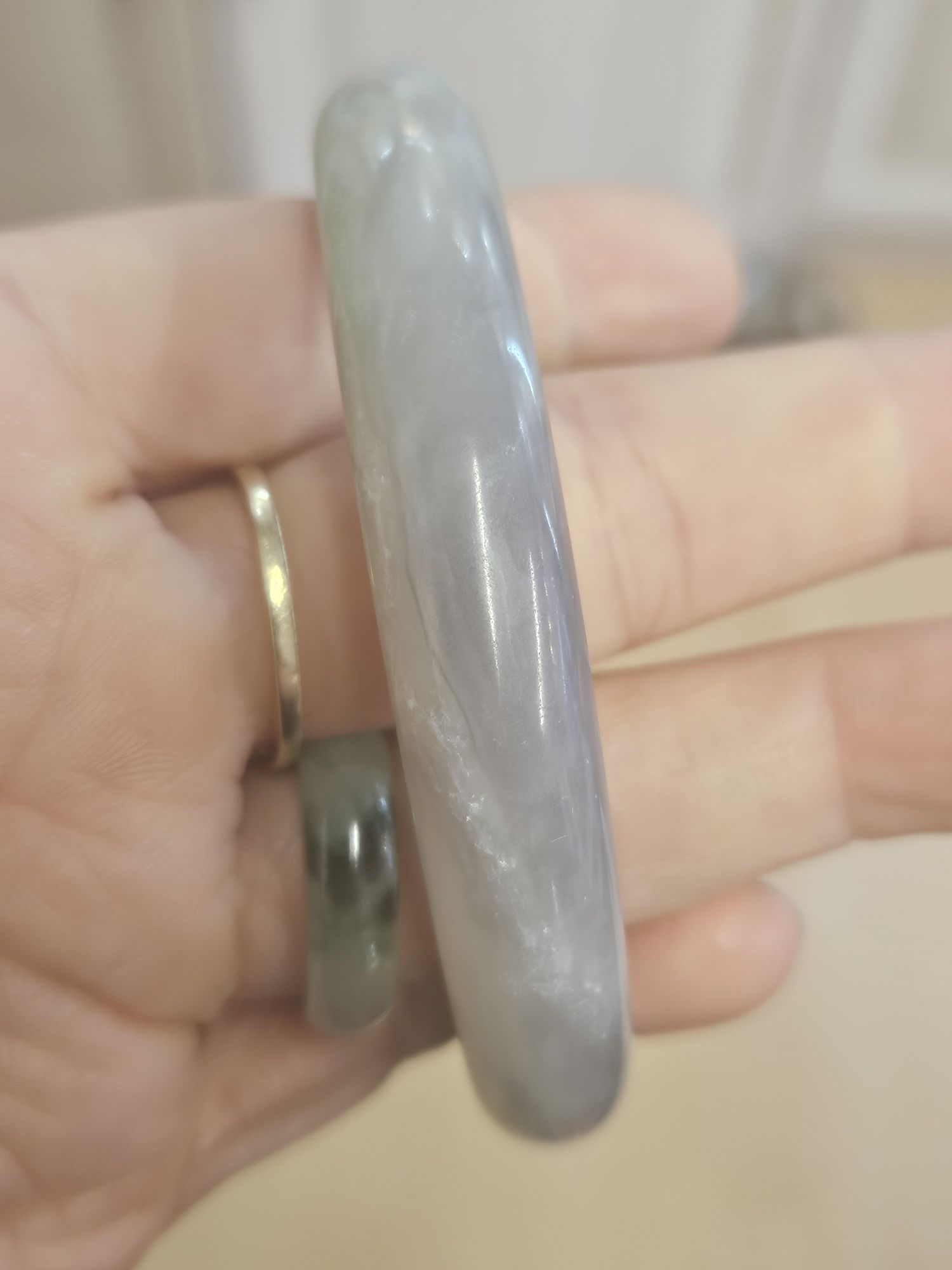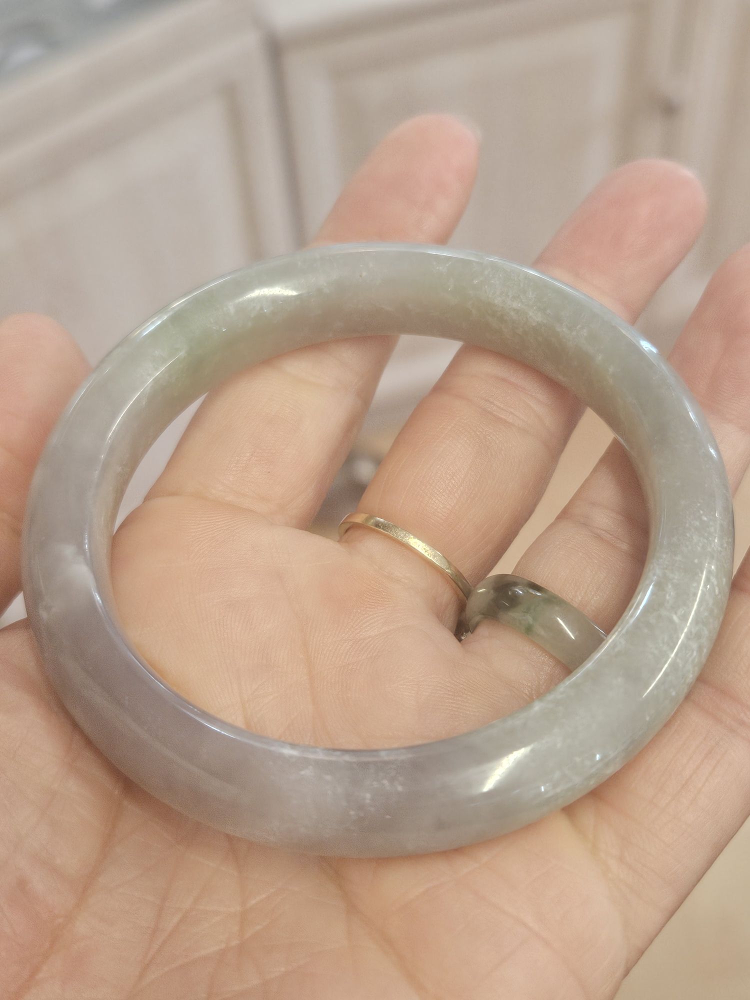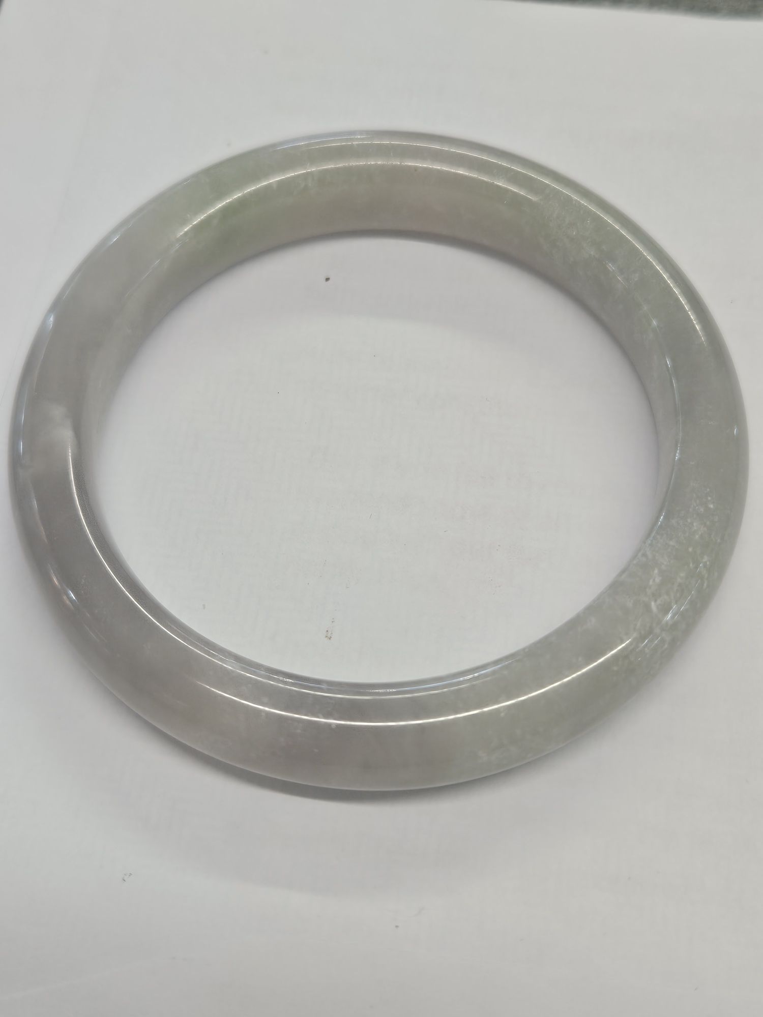 A very unusual combination of smoky purple and green Hetian jade bangle. Measures 57.4 x 10.9 x 8.9mm, weighs 50.95g, comes with a certificate of authenticity.