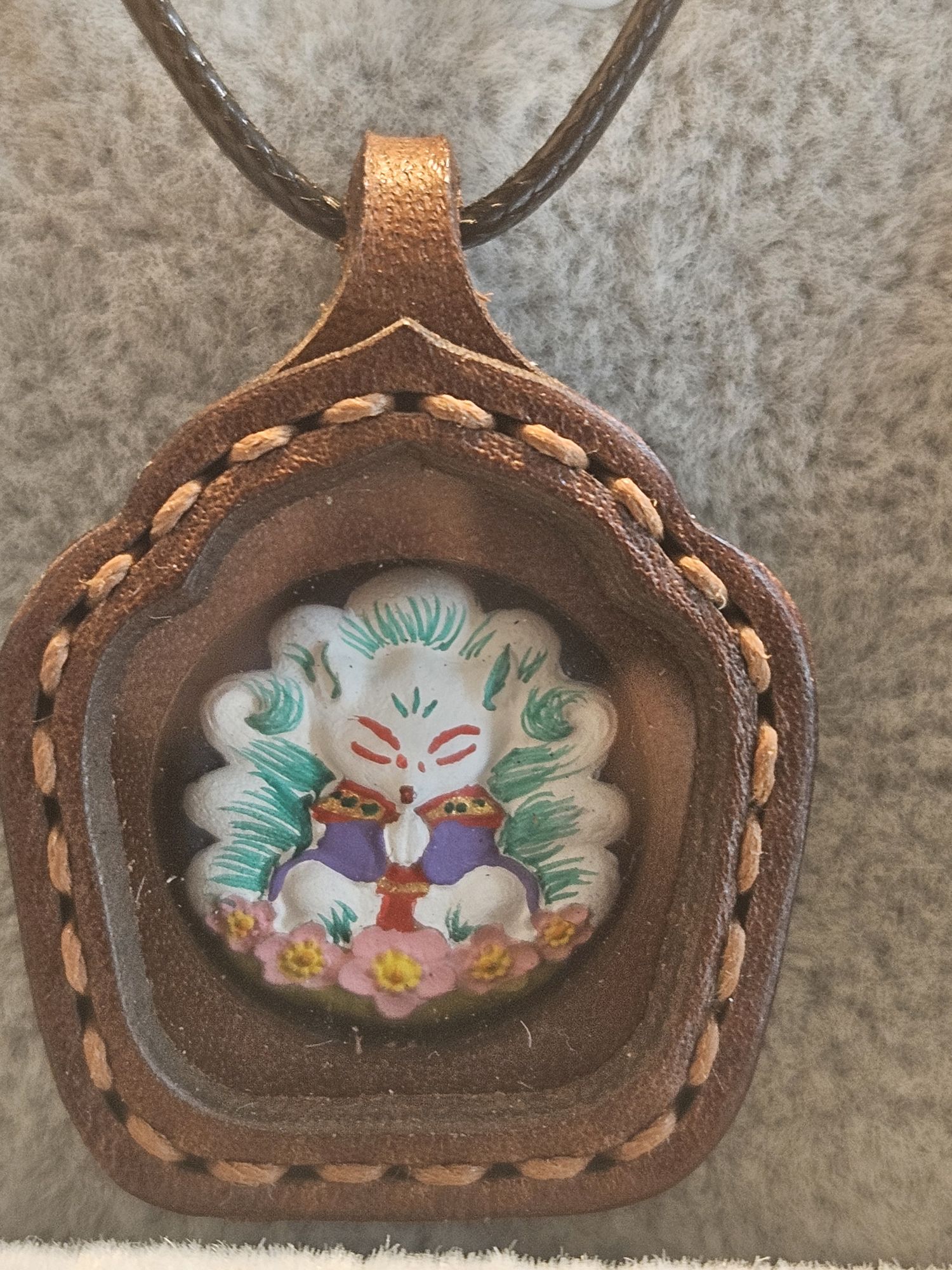 The ones we have in stock are hand painted, made of leather and hand stitched.