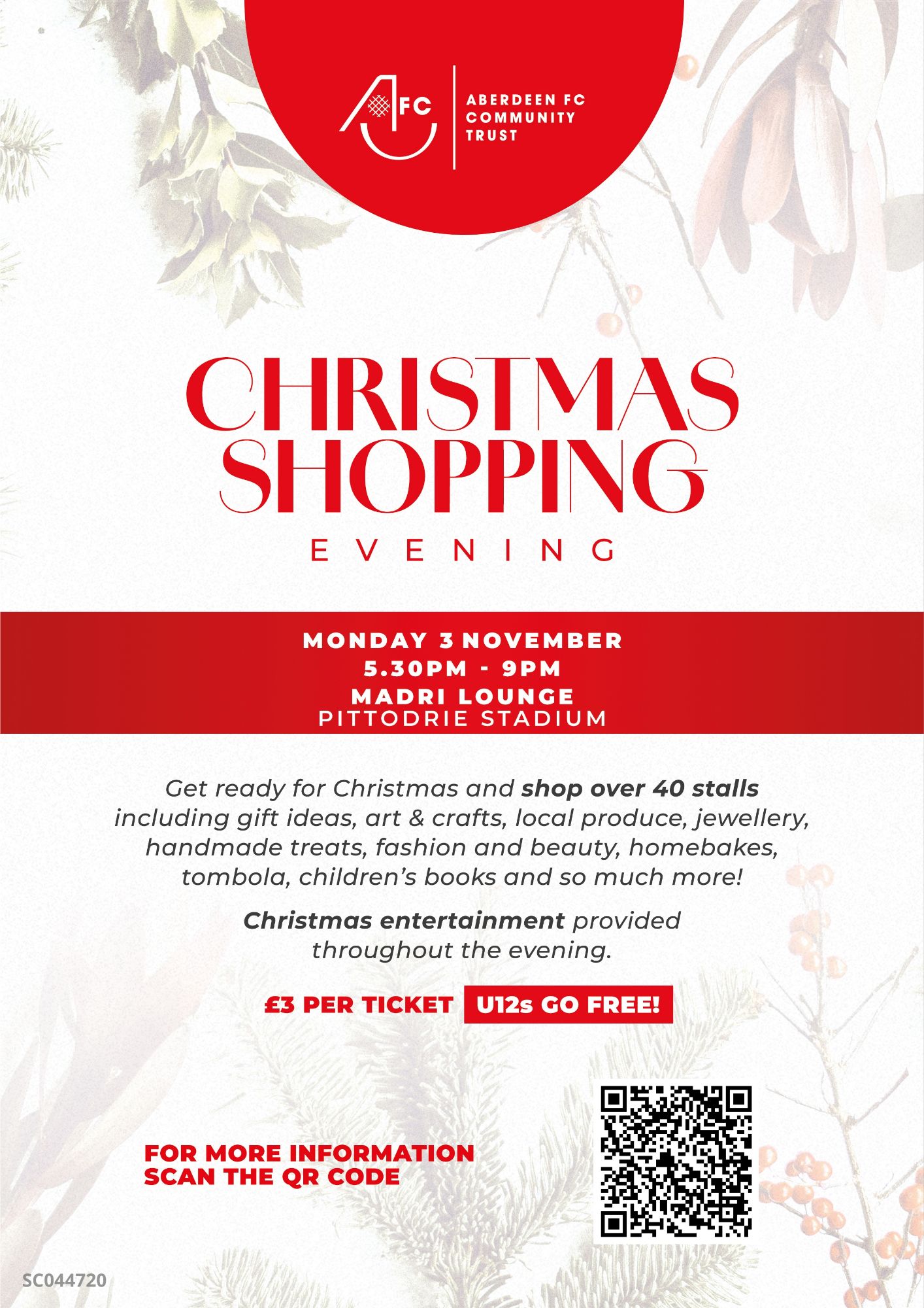 3rd Nov, AFC @afccommunitytrust Christmas shopping evening at Pittodrie Stadium, 5.30 to 9pm