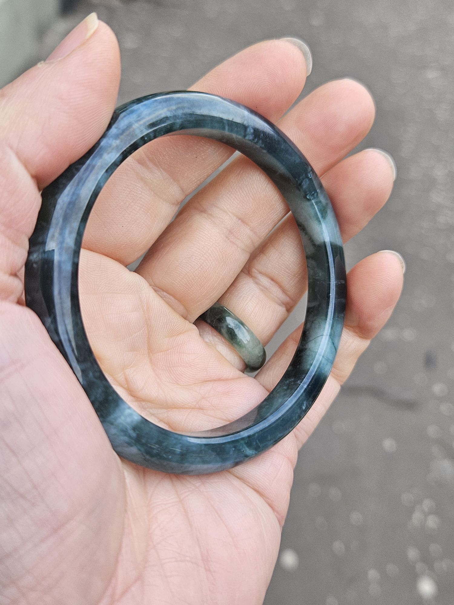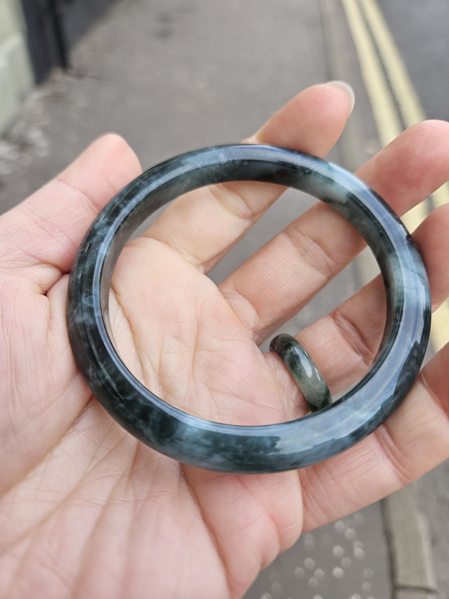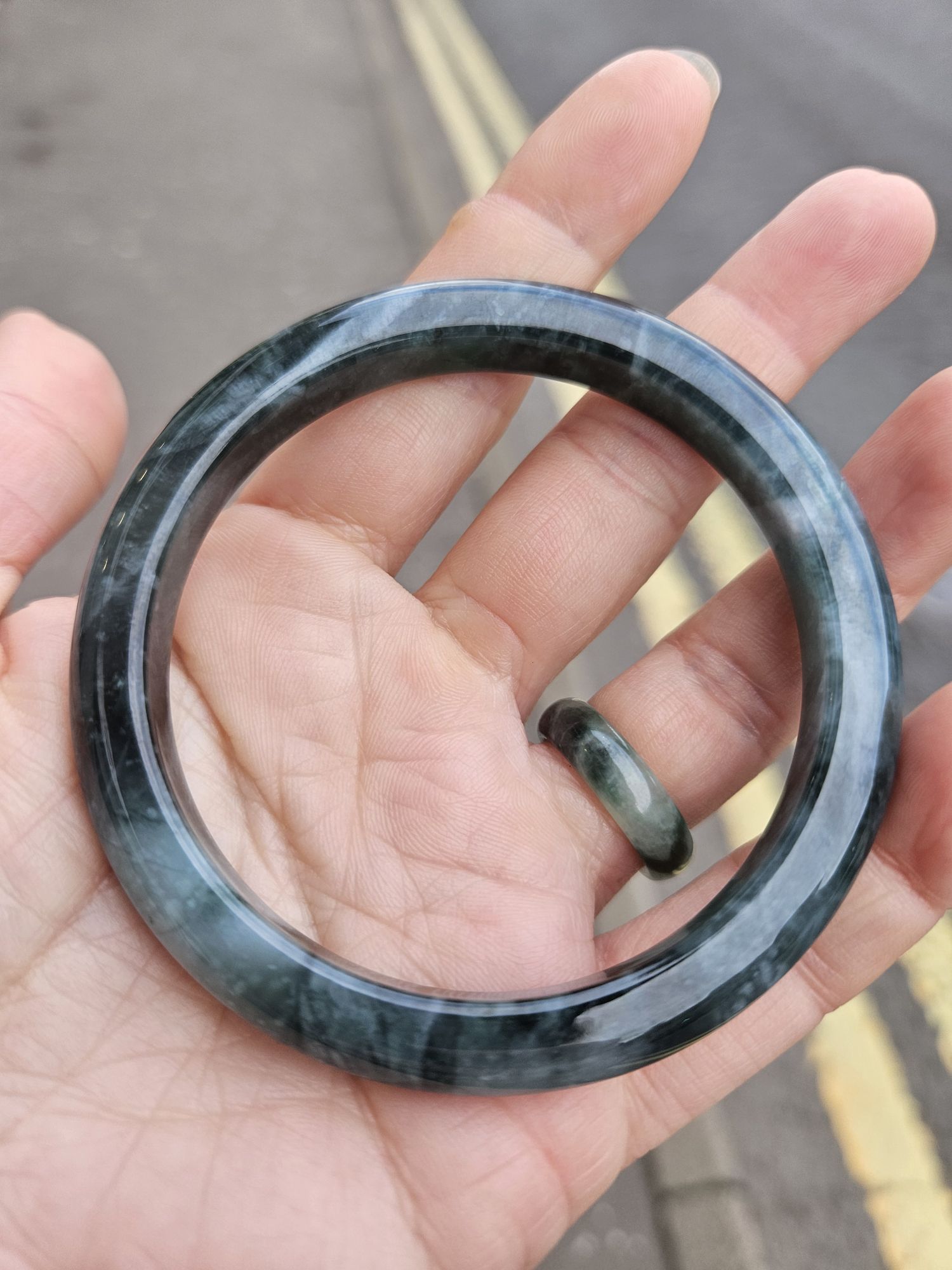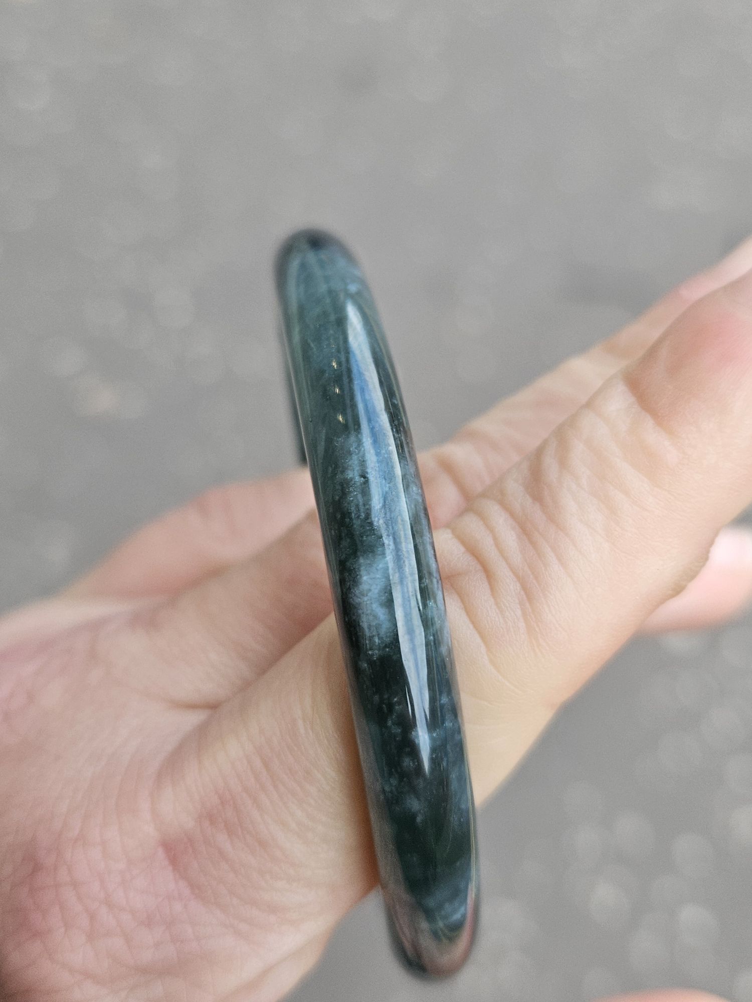 Beautiful Guatemala jadeite bangle with beautiful patterns measures 57.7 x 8.2 x 8.9mm, weighs 35.74g, comes with a certificate of authenticity £259